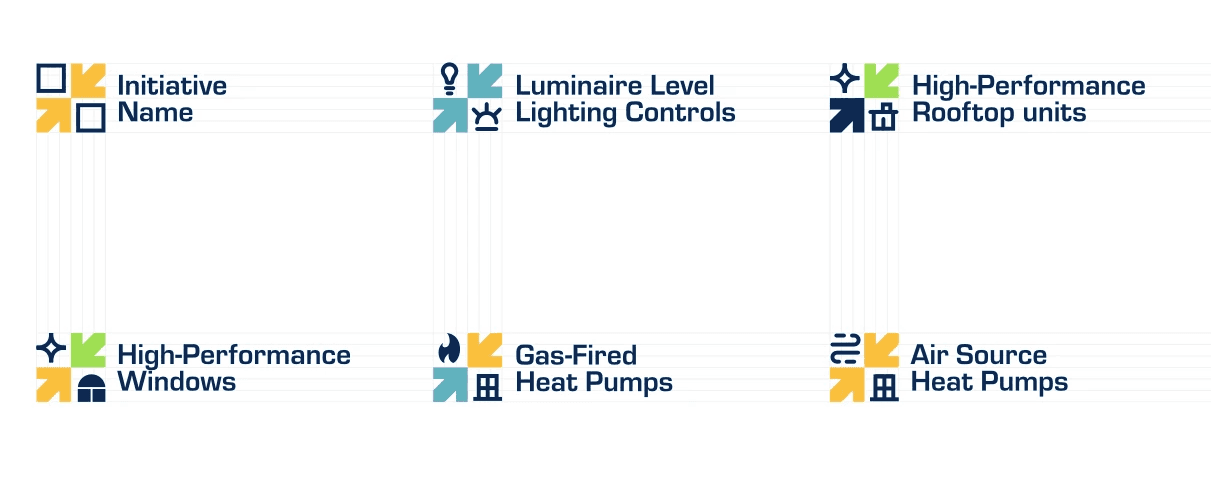 Using the two converging arrows as a foundation, the system extends into a flexible sub-brand language built around connection. I designed an icon to represent each sector, and those icons are paired together within the structure, placed in opposing corners to create a clear and consistent visual rhythm of memorable logos.