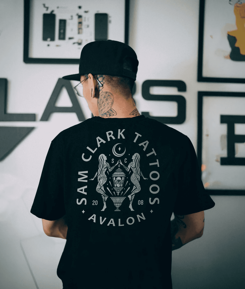 Let's get straight to the point. Sam Clark’s work is phenomenal. His tattoos take everyday ideas and push them into something extremely expressive through rich color and deep storytelling. I've been following his work for as long as I can remember, and over time I became familiar with his logo designs as well. Working with him has been a dream project. Fortunately that dream turned into a reality. My fiancée and I traveled to Australia to visit him and his wife, and I had the opportunity to create something to remember forever.