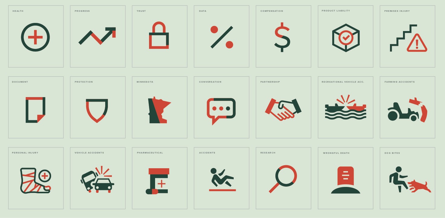 Personal injury clients are not browsing. They are stressed, overwhelmed, & trying to understand a process that feels designed to confuse them. The icons needed to be clear, approachable, & warm enough to not feel clinical. Each one was designed to communicate quickly without adding to the noise. On brand, but built for a person in a hard moment.